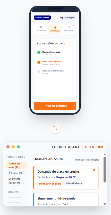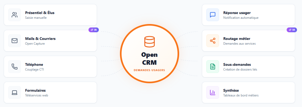 Un seul référentiel usager, une gestion multicanale et un cockpit agents 360°.