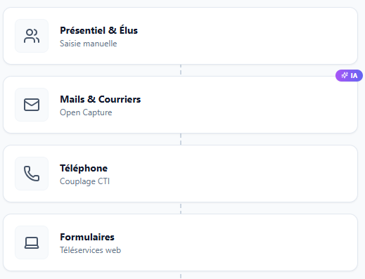 Peu importe le canal choisi par l’usager, Open CRM unifie la captation, automatise le routage et centralise le suivi. Une vue unique pour vos agents, une réponse rapide pour le citoyen.