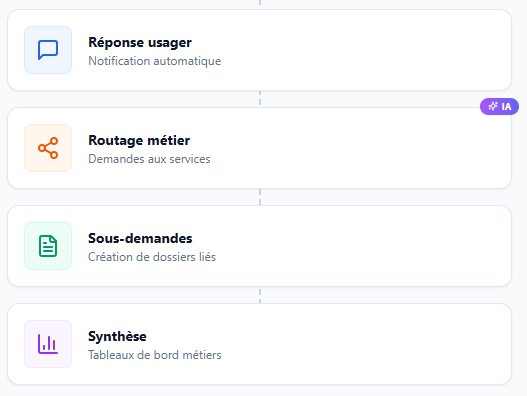 N’attendez plus des mois pour lancer une nouvelle démarche en ligne. Grâce à notre architecture no-code, vos équipes paramètrent les formulaires, ajustent les règles de routage et modifient les circuits de validation en quelques clics.